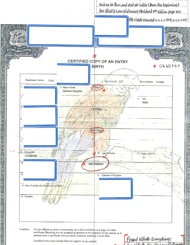 Consent. See Birth Certificate copy Below.