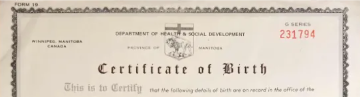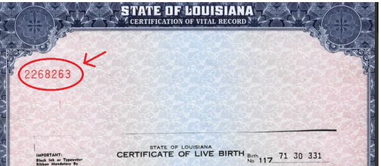 See Birth Certificate copy Below.