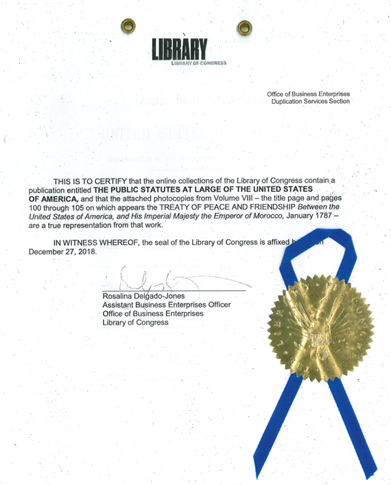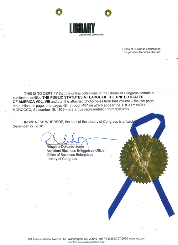 Peace and Friendship of 1787 and 1836 between the United States and the Moors Moroccan Empire